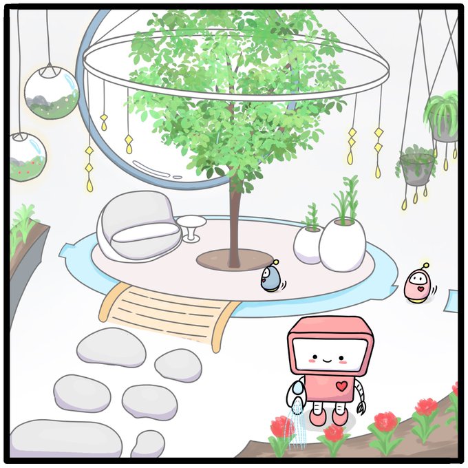 #コルクラボマンガ専科 #1日1コマ 『 #こんな見た目のキャラが好き 』 ペンゴローの仕事の上司のロボさん。小さい頃からこんなロボットがいたらいいなと思ってました。メカなのにメカだからこそ、自然が大好きなロボさんと仲間たち。