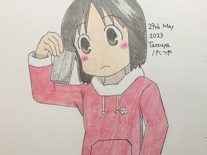 #一日一絵 #毎日絵一枚上げる #イラスト #色鉛筆画 #オリキャラ #イラスト好きな人と繋がりたい #絵描きさんと繋がりたい #こんにゃくの日 河村栄美 こんにゃくが好きな女であり好物はおでんのこんにゃく お化け屋敷でこんにゃくを小道具に使う事があるらしい