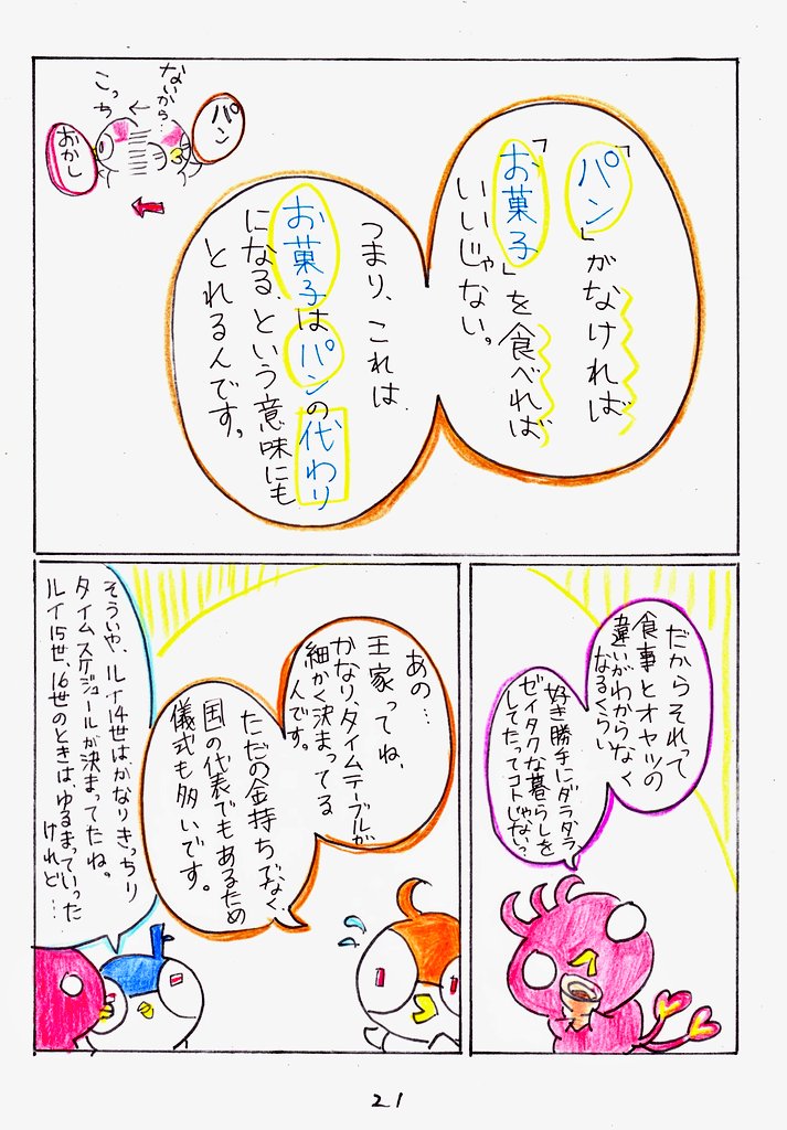 パンの説明まんが6。 「パンがなければお菓子を食べればいいじゃない。」の 「パン」と「お菓子」とは 具体的に何なのか?の話です。 #パンがなければお菓子を食べればいいじゃない #アントワネット #しゅるつる #漫画が読めるハッシュタグ #漫画 #ごじたくーる