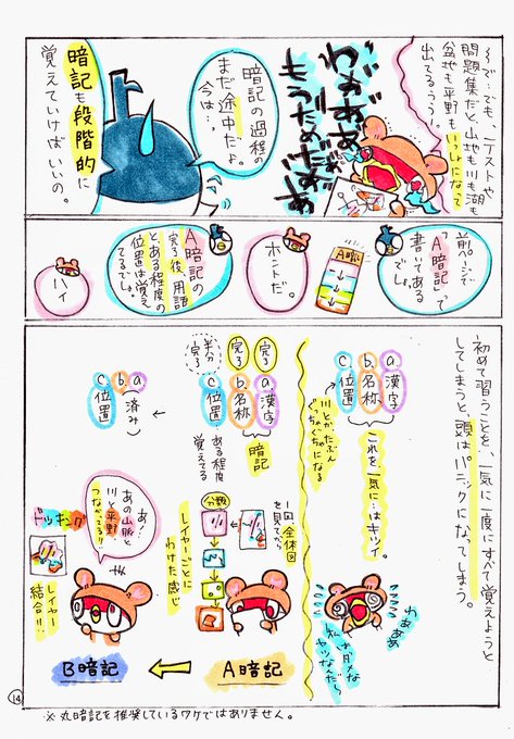 つづき。(3/4) ここからは、色々と調べて理解したとしても、どうしても、最後の詰めは、一部の子供以外は、 暗記という行為が必要だ、 というのは、私は思います。 でも、そのときに、どうするか? について、自分なりの見解を書きました。 #漫画が読めるハッシュタグ #暗記 #ごじたくーる