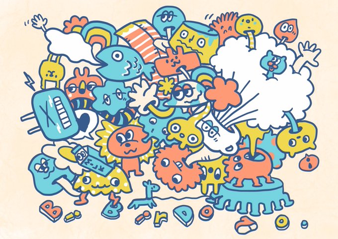 ごちゃごちゃが ぎゅぎゅぎゅーっと詰まった わくわくする世界がすき¨̮♡ #ゆるいイラスト #ゆるい絵 #わくわくあにまるず‼︎ #動物イラスト #モノクロイラスト #ごちゃごちゃした世界 #ごちゃごちゃが好き