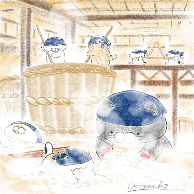 ごはんねこ酒造「極みの肉球」の寒仕込みが始まりました。 #ごはんねこ #猫 #イラスト #お米 #ごはん #純米酒 #猫好きさんと繋がりたい #イラスト好きさんと繋がりたい #みんなで楽しむTwitter展覧会