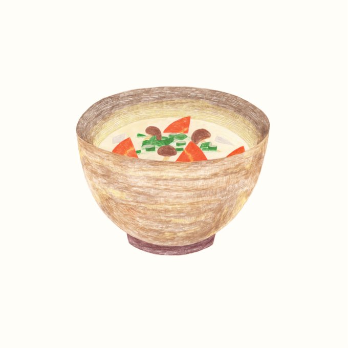 豆乳のお味噌汁 器描くのがめちゃくちゃ楽しかったやつ🤲 #平林香乃 #hirabayashikano #もの画 #イラスト #イラストレーター #ごはんの絵 #色鉛筆 #手描き #illustration #Illustrator
