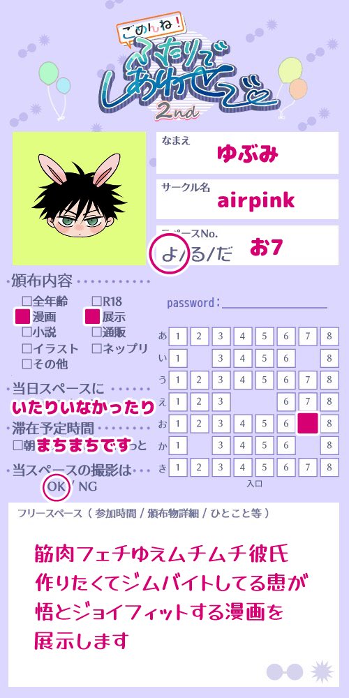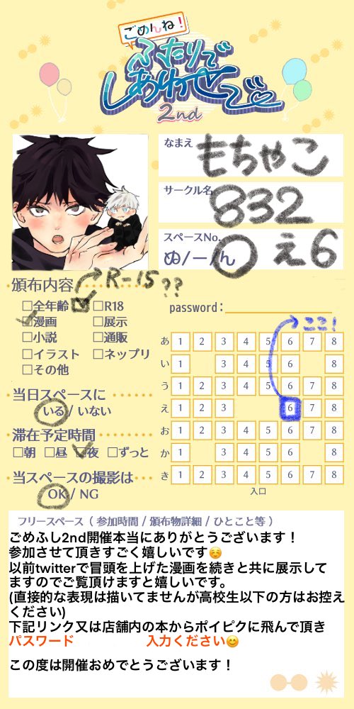6/17 ごめふし2nd☀️お品書き 開催ありがとうございます!! 【ー:あ7】でスペースいただきました。 当日展示出せるように頑張ります🤞😎💦 #ごめふし2nd #ごめふし2nd_noon