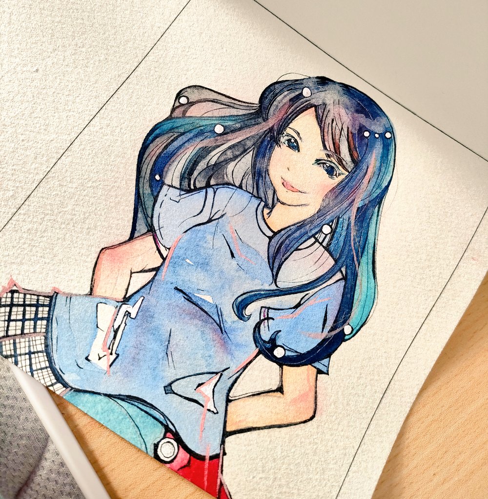 安城商店街アイドル「看板娘。」『ひーぼー』さん💙作画メイキング✨ 蒼く輝きクルクルと表情を変えていく様はまるで宝石のようでした💎 #安城商店街アイドル看板娘 #ひーぼー #ペン画 #吉祥顔彩 #顔彩 #ご依頼品 #有償依頼 #ファンアート #イラスト #イラスト好きな人と繋がりたい #メイキング twitter.com/hoshinotani_…