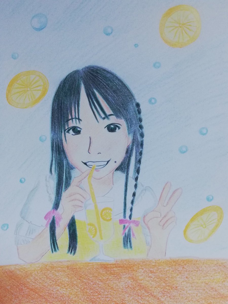 マジカルバルルーンyes のあやのちゃんをアニメタッチで描いてみたよ😆✨ レモネード飲むあやのちゃん💖 この間のマジバルコンサートの時の衣装にしてみた✨✨ #マジカルバルルーンyes #マジカルバルルーン #あやのちゃん #福島 #ご当地アイドル #ファンアート #色鉛筆画