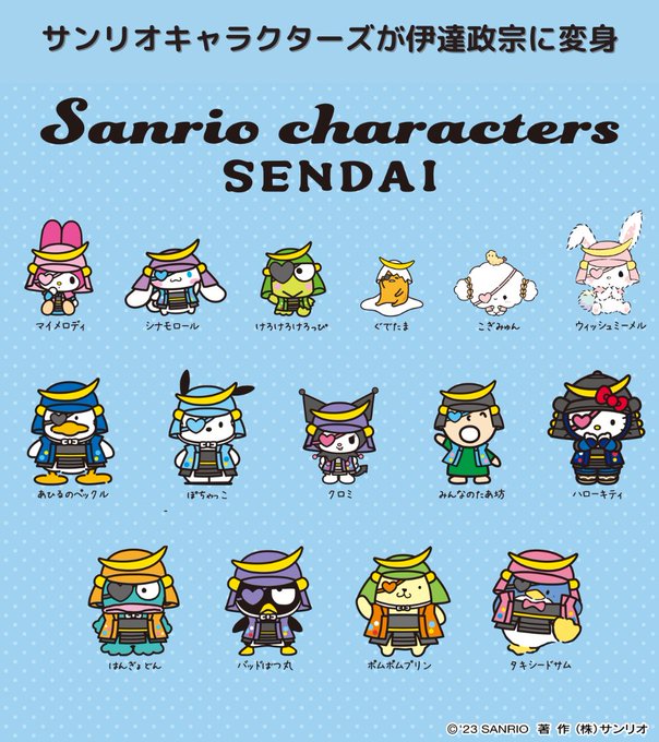 【宮城限定】 サンリオキャラクターズが伊達政宗に大変身! ステッカーは全16種類☺ #ウィッシュミーメル#みんなのたあ坊#こぎみゅんは ご当地サンリオキャラクターズ初登場✨ 好きなキャラクターをコメントで教えてね♥ ※5/2(火)より順次発売 #ご当地キティ #ご当地サンリオキャラクターズ #仙台