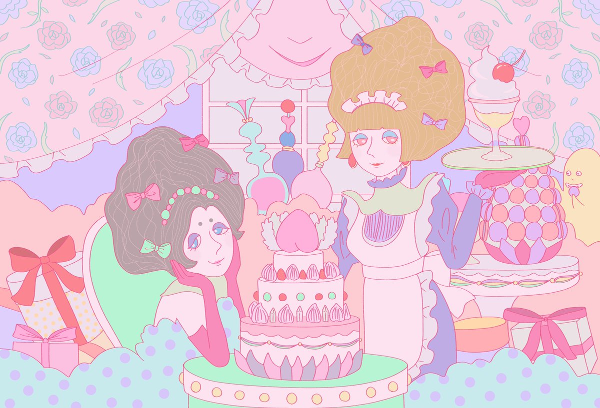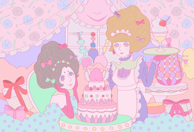 【桃源郷🍑振り返り】 ホテルのスイーツビュッフェ、予約しちゃう🍰 #桃源郷ガールズ #ホテル #スイーツビュッフェ #ご褒美 #イラスト #お絵描き #漫画 #1日1絵 #イラスト好きな人と繋がりたい #絵描きさんと繋がりたい