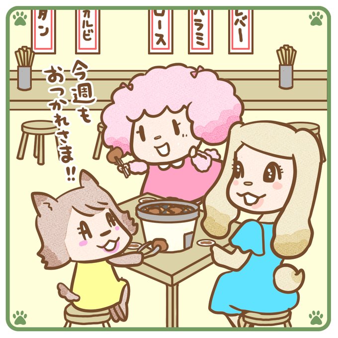 今日はみんなで焼肉✨❣ 一週間頑張ったご褒美って大事よね🍗 #OL #週末 #焼肉 #ご褒美 #肉の日 #恋活 #片思い #好きな人を振り向かせる #かわいいもの好き #ゆるふわ #ゆるイラスト #お絵描き #漫画が読めるハッシュタグ #イラスト #イラスト好きな人と繋がりたい #絵描きさんと繋がりたい
