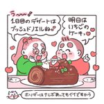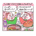 ホリデーのお祝い 🍩「明日のお祝いも楽しみだねえ!😊💕」 #ぽちゃ日和 #イラスト好きな人と繋がりたい #絵柄が好みって人にフォローされたい #クリスマス #メリークリスマス #メリクリ #christmas #ホリデー #ご馳走