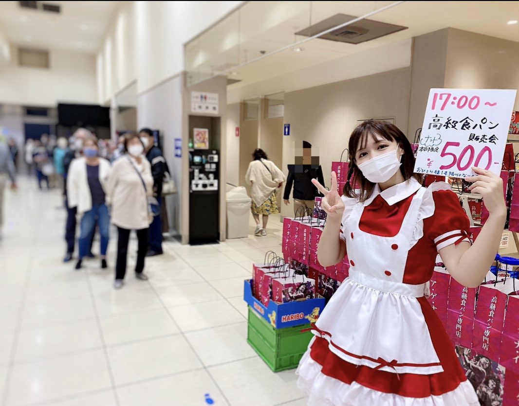 おはよう☀ 今日は #さいたま市桜区のお店 12時からマスク😷 17時から高級食パン販売だよ さてさて、パン屋さんで仕入れです🍞 テイストが似てる気がして、パン屋さんに負けないくらいに派手なスカートを履いてきたよ(私服) えぇ。 すれ違った人に二度見されますた…( *՞ਊ՞*)アハ♡