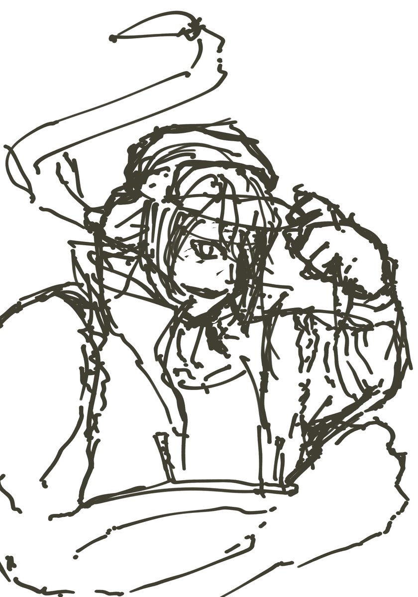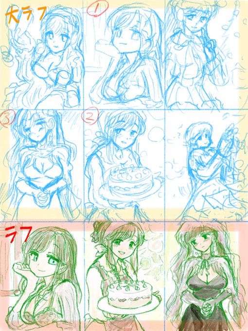 さいとうなおき先生のお絵描きドリル 一日目をやってみました 4時間でラフ2枚、カラーラフ2枚は キャラとポーズを考えるので限界で デッサンと服と背景は諦めました イラストレーターさんでワンドロで 仕上げる人はやっぱすごいなぁ #イラスト #さいとうなおきのお絵描きドリル1日目