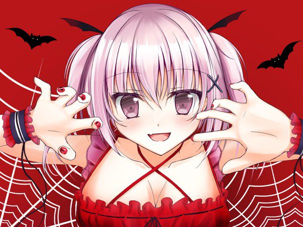 「司さま、トリック・オア・トリートです!」 ヴァンパイア仮装のメリッサ! (「・ω・)「ガオー 🕸🧛🦇👻🎃🍬🍭 #さくレット #きゃべつそふと #ハロウィンイラスト #ハロウィン #Halloween