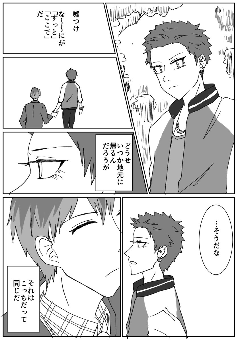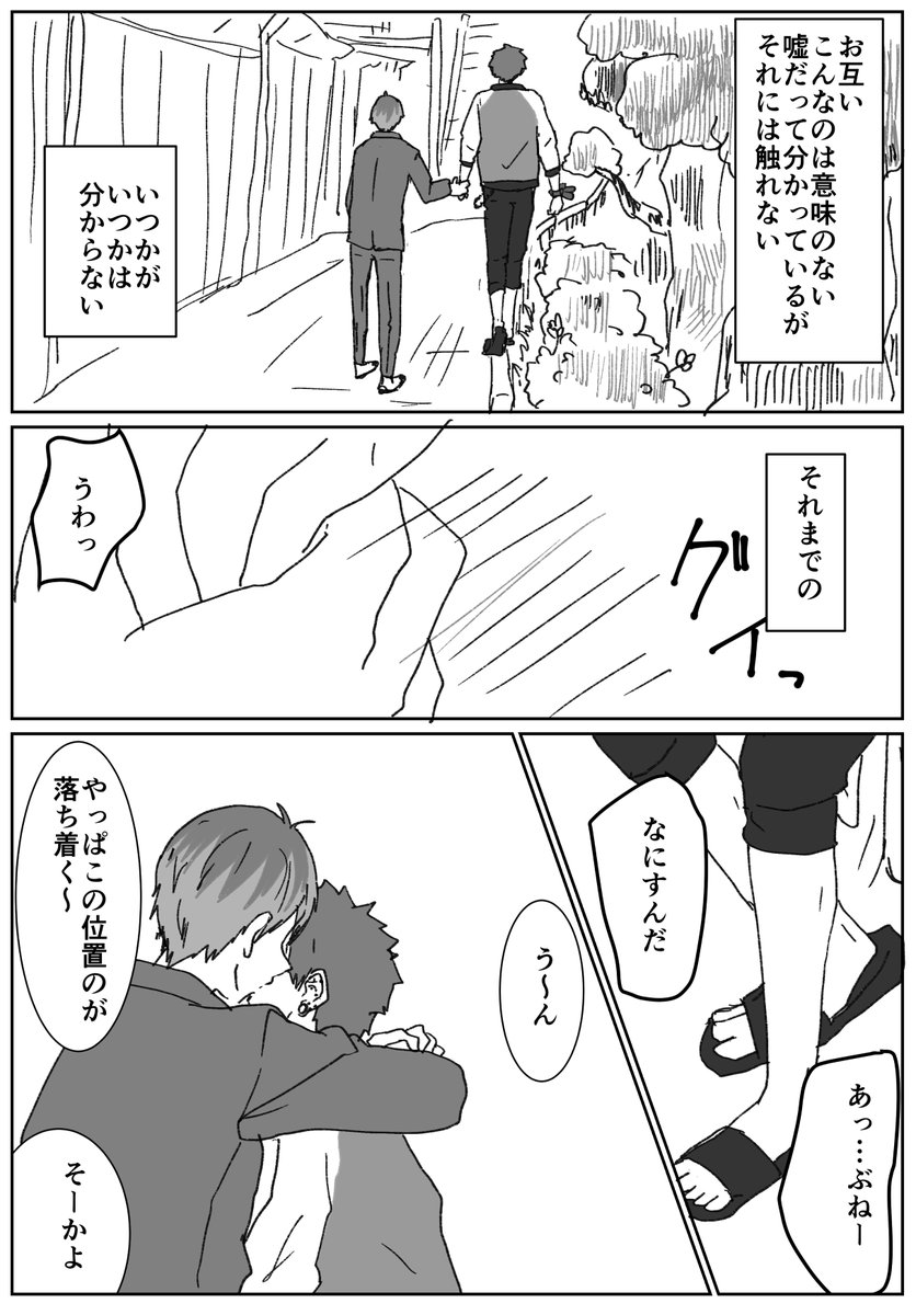 別れの気配は感じつつ、その時まではモラトリアムしておくささくうの雰囲気漫画です。 1h + 1hくらい お題:「嘘つき」「以心伝心」 #ささくう版ワンドロワンライ #ささくう版ワンドロワンライ延長戦 @3395oneDoneW