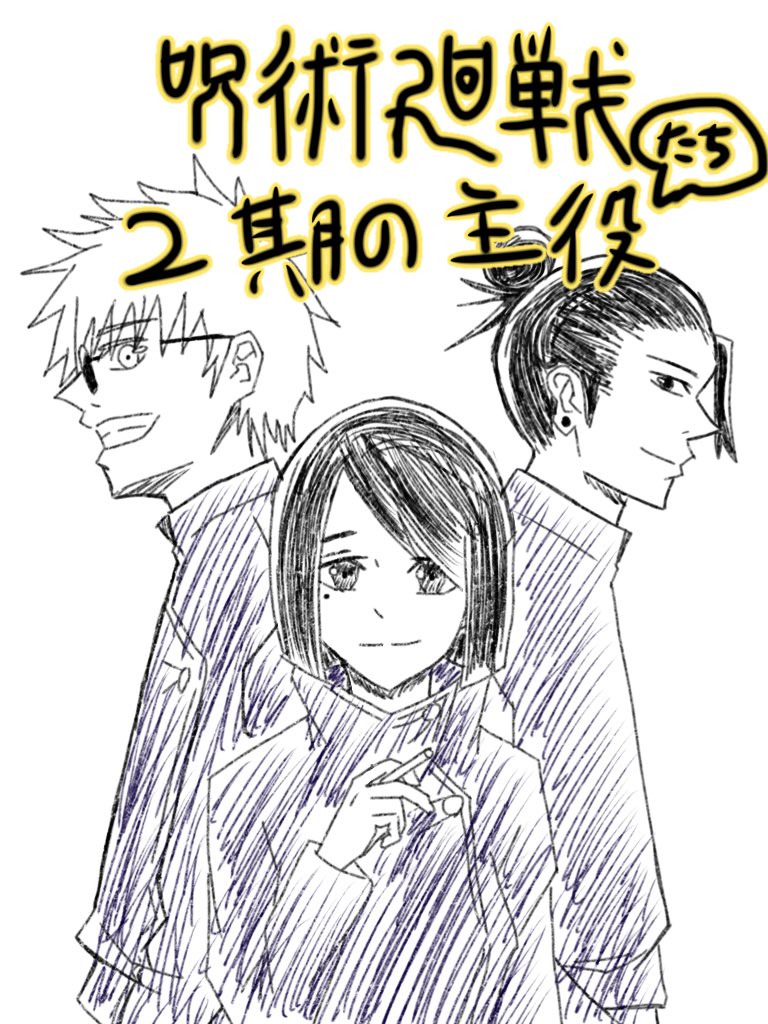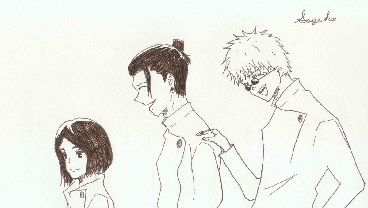初のさしす組!! なんだけど、、力尽きてモノクロにしちゃった… 服も真っ白だけどユルシテ(>_<。) #呪術廻戦 #さしす組 #アナログ絵 #呪術廻戦ファンアート #絵師さんと繋がりたい #呪術廻戦好きさんと繋がりたい