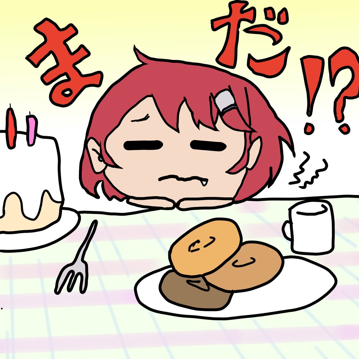 パーティーの準備が整うまでお預けを食らうジギタリス🔥🍩 完成!🎉✨😆✨🎊 おそらく画面外からプルメリアあたりがニコニコながら 見張っていることでしょう(;^ω^)メッ #ゴ魔乙ファンアート #さっさとスタンプ化しなさい #ジギタリス生誕祭