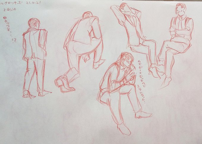 やったー!あのさとまこさんからクロッキー動画が出たーー!有り難く描かせて頂きました、まこさんの座りポーズで首クイッと斜めにあげてるのとても好きです(再現ならず…くっ) 先日のスーツドロ講座でお前は一体何を学んだんだって位描けなくて復習を誓った夜です。 #さとまこ #さとまこクロッキー