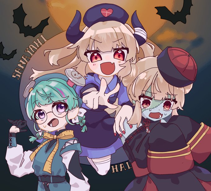 さなちゃんの今日の生放送観ながらライブで印象に残った所を描きました。まだまだ見どころありすぎて描き足りないけど!!ゾンビキョンシーめちゃ好きだ…!!首が落ちそうになってるのも可愛かった~!!!最高のハロウィンライブでした!! #さなやひハロウィン #ヌォンタート #やひろかいたぞ