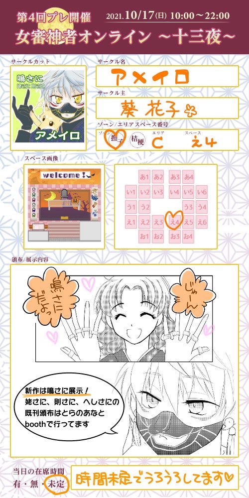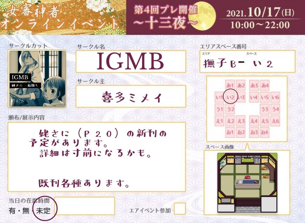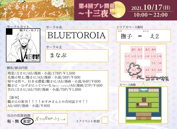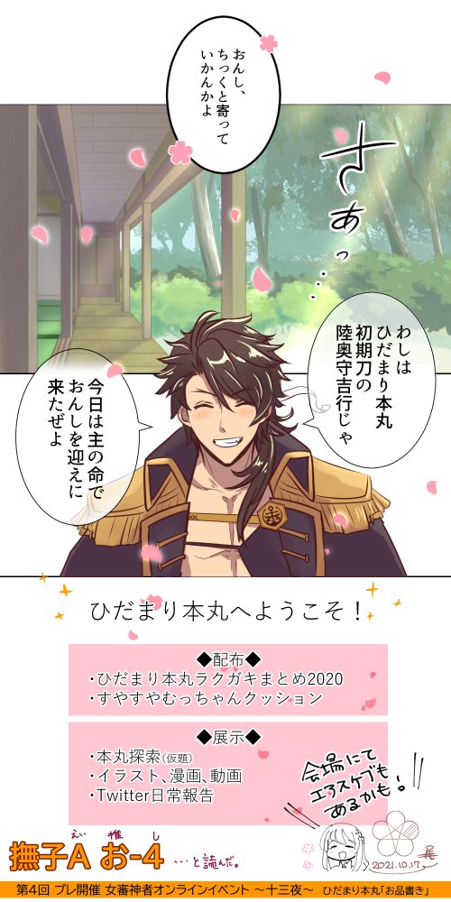 【サークル参加します!】2021年10月17日(日)第4回 プレ開催 ~十三夜~ saniwa-online.jimdofree.com #さにイベ十三夜 #さにイベ撫子 ただいま本丸内の敷地を一部公開準備中…☺️ 良かったら遊びに来てくださいませ🌸