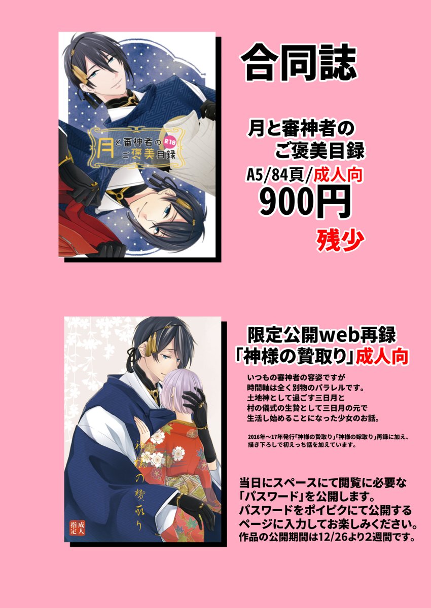 ※みかさにパラレル イベント限定web公開では「神様の贄取り」【pixiv.net/artworks/71641…】をポイピク【poipiku.com/1260917/】で全ページ公開します。当日スペースにて公開するパスワードを入力してお楽しみください🦄 #さにイベオンリー #さにイベ銀花