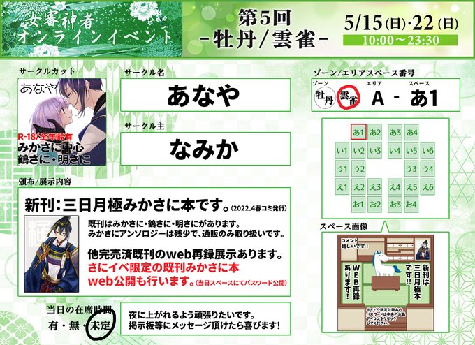 【お知らせ】5/22 さにイベ雲雀(pictsquare.net/b4wgv63avvrceb…)に参加させて頂きます。新刊は春コミに出した三日月極本ですー! pixiv・ポイピクにてweb公開あります。 とらのあな:ec.toranoana.jp/joshi_r/ec/cot… booth:sharp69.booth.pm folio/B5本のみ:b2-online.jp/folio/15091500… #さにイベ雲雀