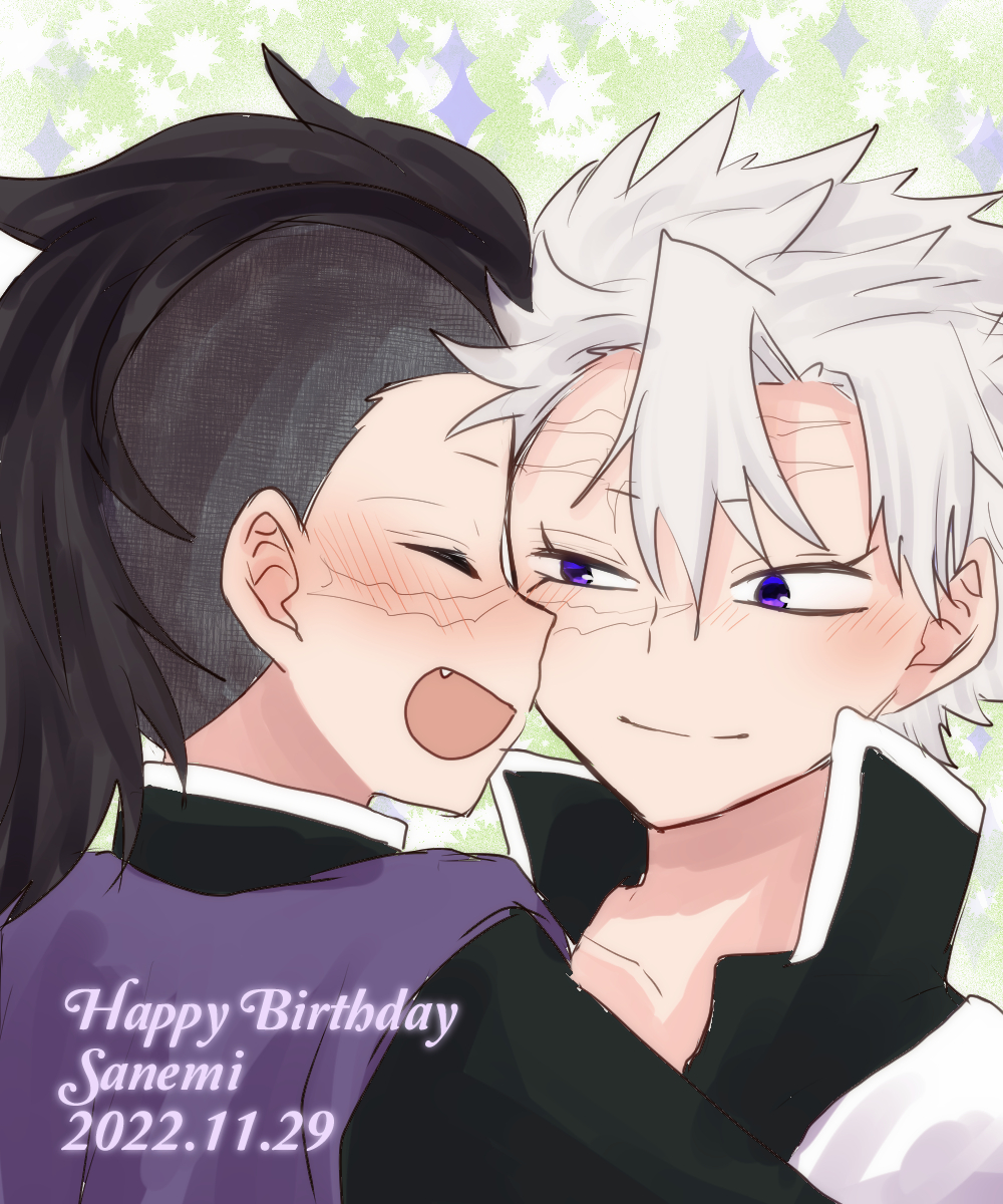 #さねげん版バースデー1129 🏷️お借りします🙏 冗談半分にうっかり「🎁は俺とか?」と提案してしまった🍉と、ここぞとばかりに「それでェ❣」と乗ってしまった🍃さん🙈 🎀は妹×②の作です🤦🏼♀️