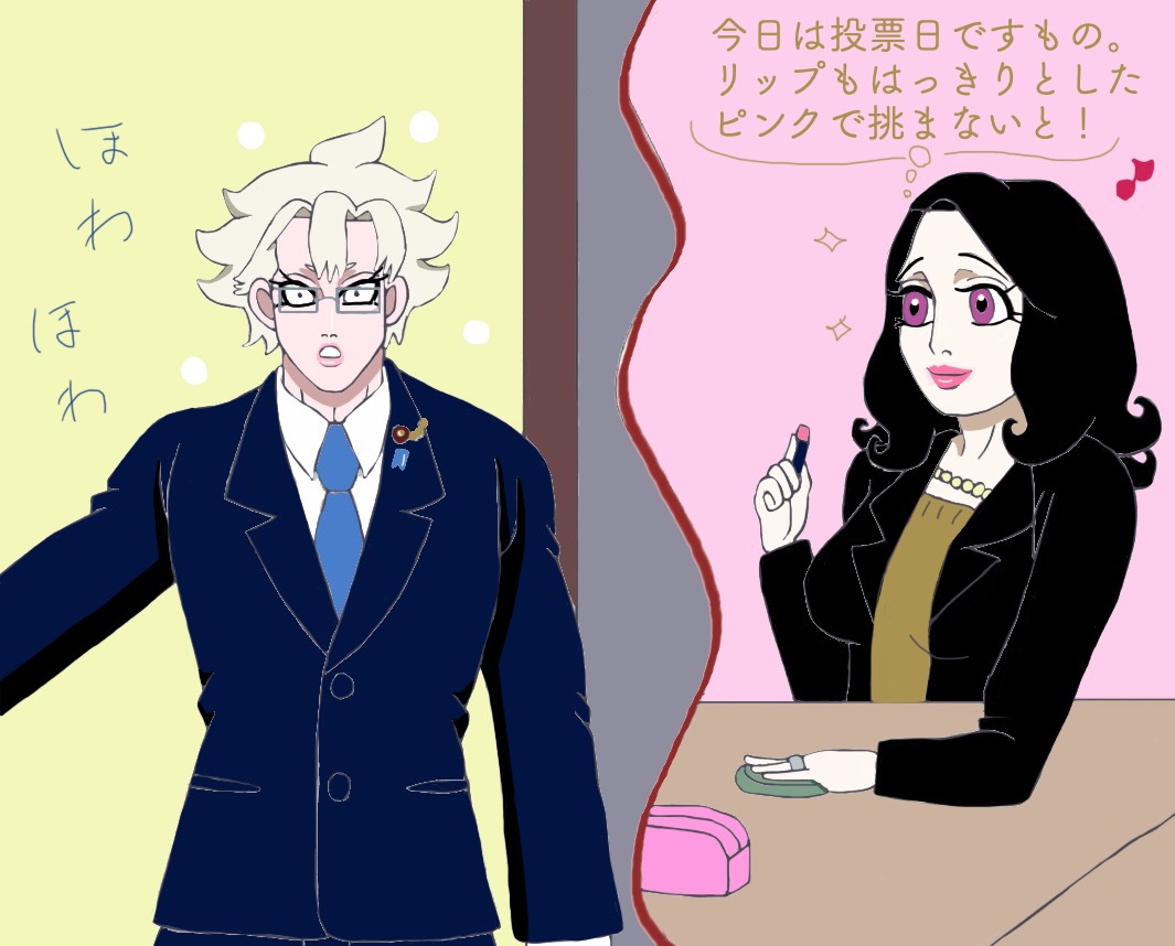 🍃さねねず(現パロ)🎀 某政治家夫妻さねねず、選挙に備えていつもと違う口紅を塗る次期ファーストレディー禰豆子ちゃん。当選した時に夫をホワホワさせるために💄 #さねねずワンドロライ #鬼滅の刃絵描きさんと繋がりたい #絵描きさんと繫がりたい