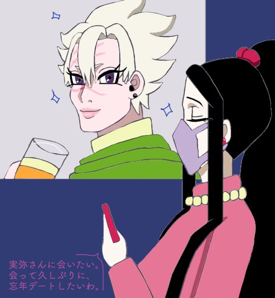 🍃さねねず(現パロ)🎀 11月のワンドロお題「すれ違い」 緊急事態宣言と蔓延防止という名のすれ違いで、リモート電話でのやり取りしか出来なかった二人。そろそろ会いたい。 季節的にも忘年会シーズンだから、二人で飲みにいきたいと思う禰豆子ちゃん🍺 #さねねずワンドロライ #鬼滅の刃お絵描き