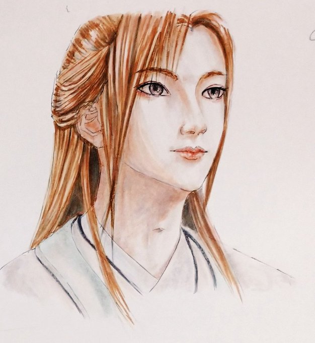 師尊模写完成~✨ 水彩画っぽく塗ったつもりですがどうでしょう?みずみずしく描こうとしたら何故か茶髪になってしまいました笑 荒いけど、出来はともかく推しが描けて満足しました😆✨ #人渣反派自救系统 #さはん #沈清秋 #模写 #イラスト好きさんと繋がりたい #絵描きさんと繋がりたい