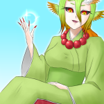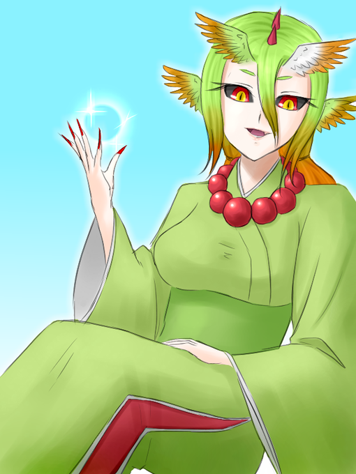 @pkgmousou #pkgドローイング #さぼ擬 「妾がひたすら妖術を 放ってるだけで稼げると言う。 妾に金運向上の利益は ないんじゃがな。」 羽原守(はばらのかみ)/★羽ばたく髪♀擬人化 全自動周回でお世話になっております。