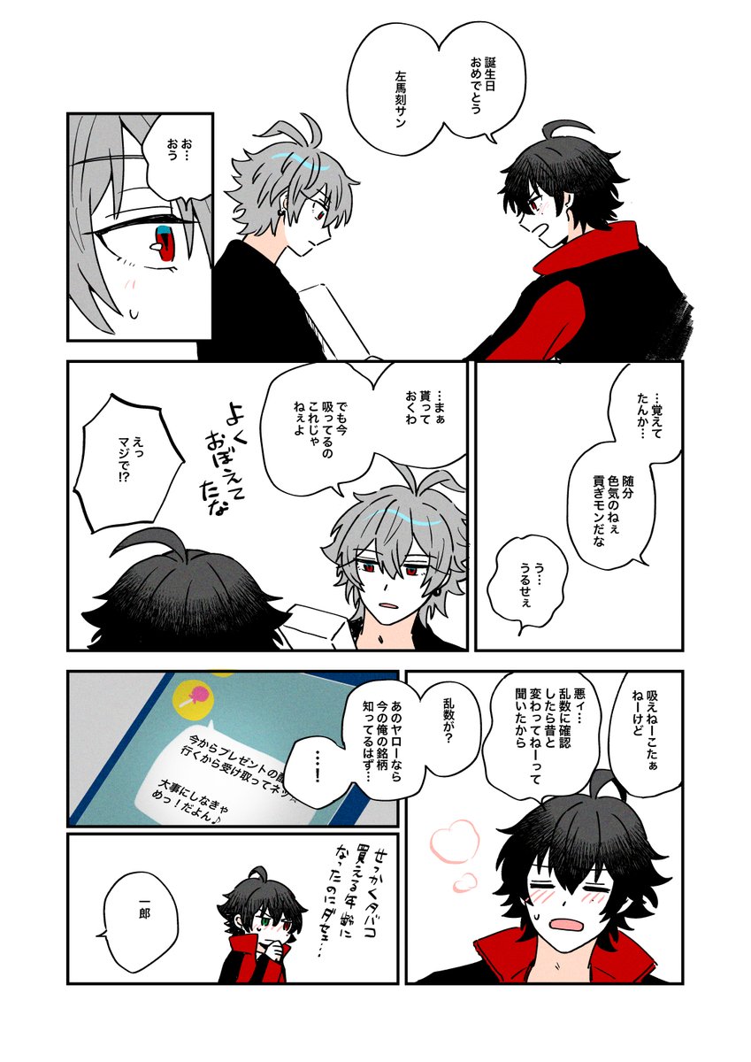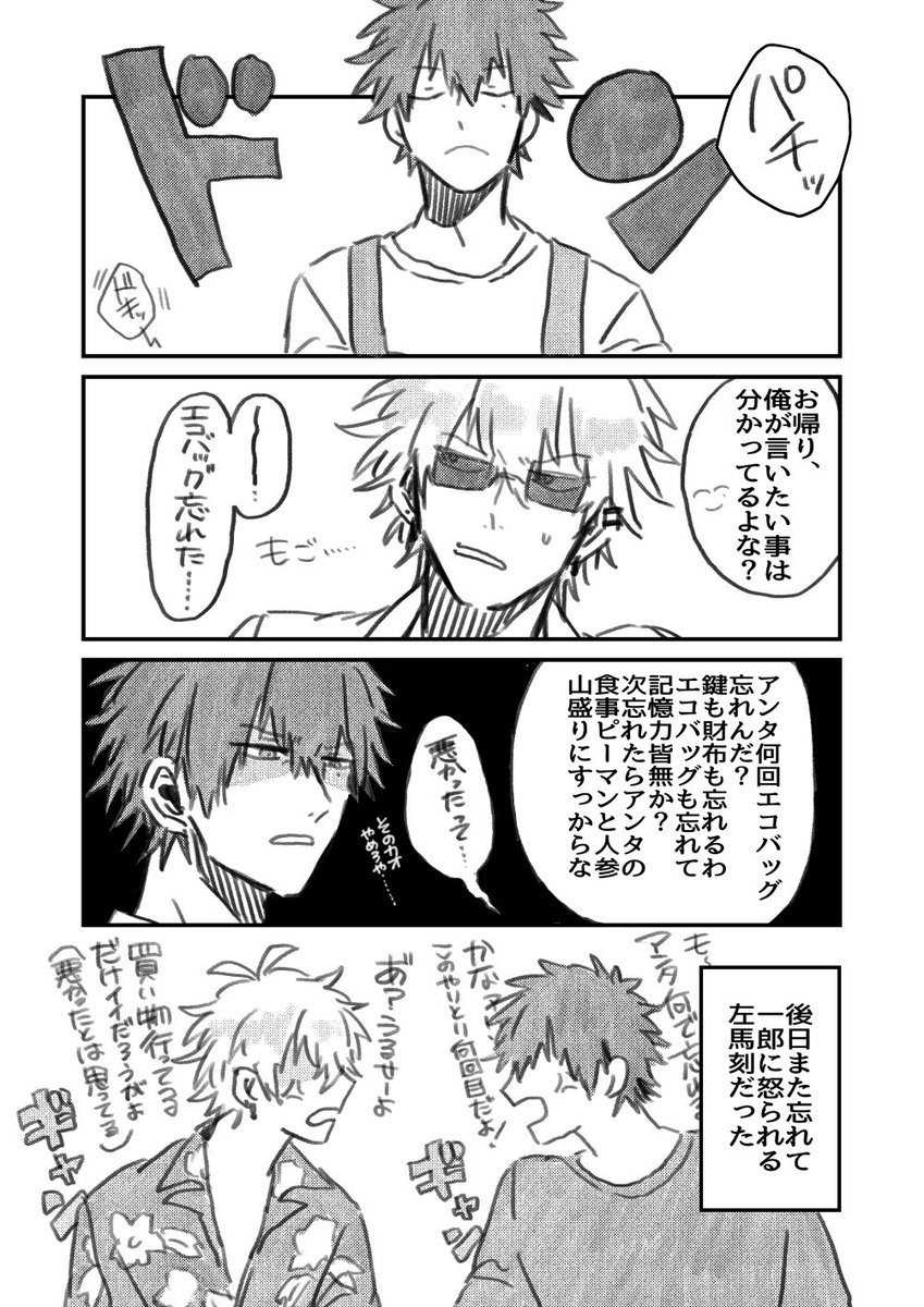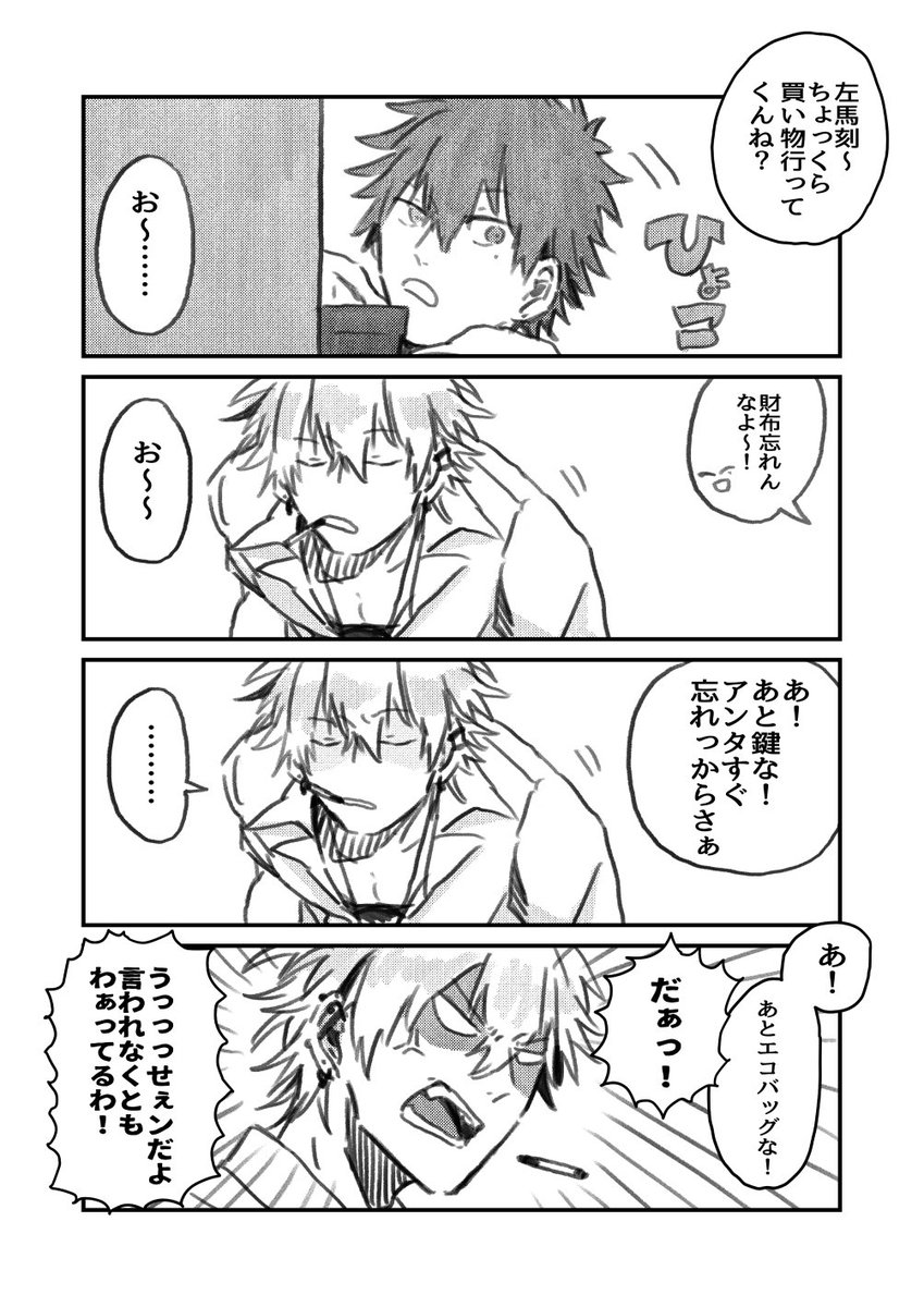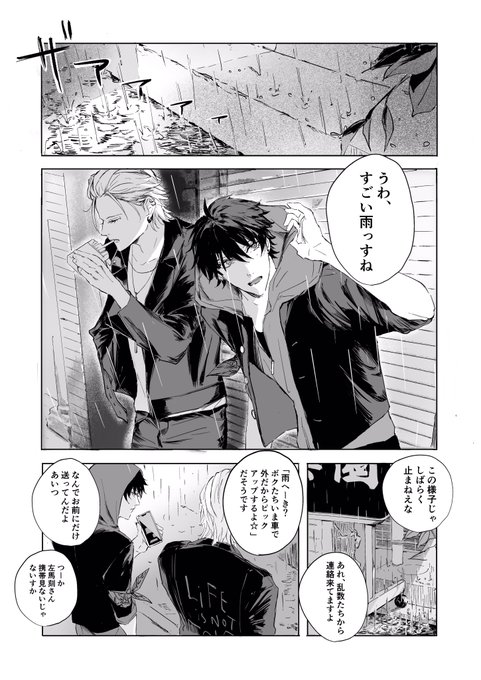 さまイチャ2おつかれさまでした!ショート漫画はこちらを展示していました TDD時代、雨の日に左馬刻にちょっと甘える一郎といじわるな左馬刻です (1/2) #さまイチャ1122_アフター