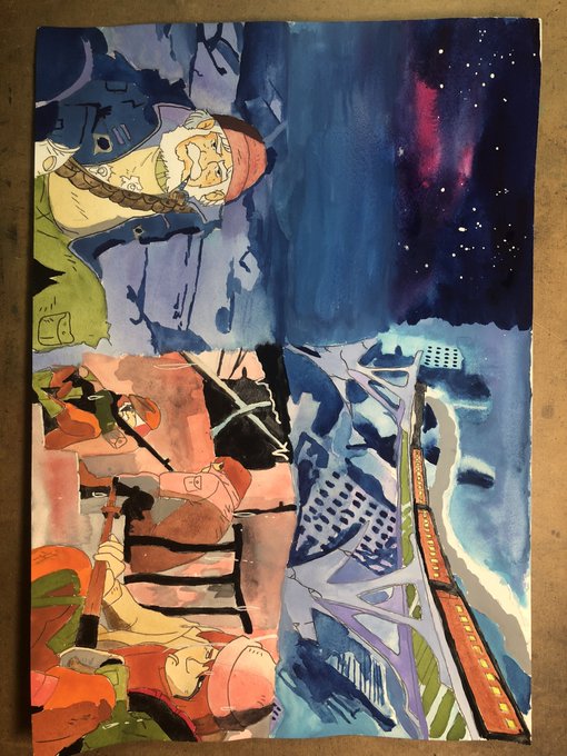 趣味のラクガキ完成しました^_^ 映画「さよなら銀河鉄道999」から パルチザンの戦士達でした さて、いよいよ次からは今年初めての お絵描きが始まります 今年は何枚描けるかな? #ポスターカラー #さよなら銀河鉄道999 #ポスターカラー #絵描きさんと繋がりたい