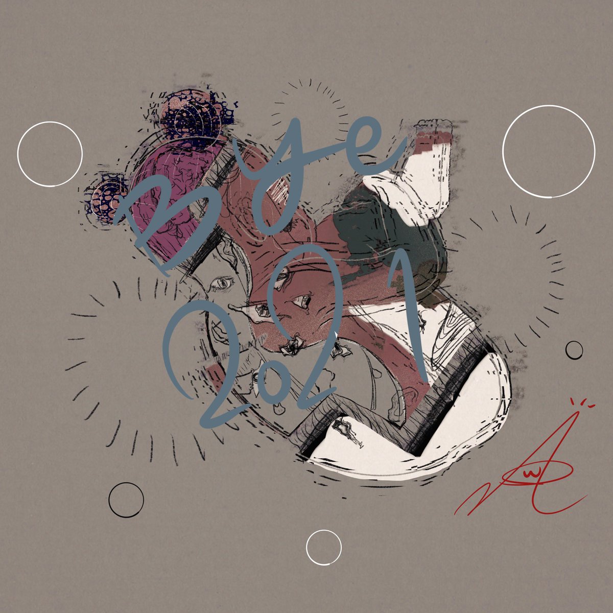 さよなら2021 皆様、本年もありがとうございました! 来年もよりよい作品作っていける様頑張りますのでよろしくお願いします! #art #artwork #artist #Illust #illustration #illustrationart #surrealism #paint #drawing #イラスト #アート #ペイント #さよなら2021
