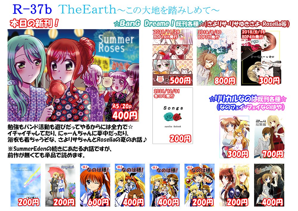 コミケお品書きです! 全28種!多い!w 新刊/SummerRoses/400円 サンプルはコチラ→twitter.com/kid_yuuki_sato… 20枚ほど表紙ポスカあるので、会場分には先着でお付けします☆ スペースは東2 R-37bです! 通販はメロン🍈専売→bit.ly/3xLM4Rr 明日もよろしくお願いしますー! #C100 #さよリサ