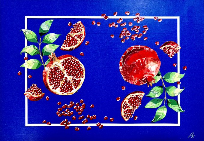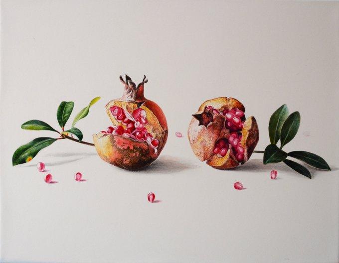 透明水彩で描いたザクロ メイキングはこちら→youtube.com/watch?v=bsyD1k… ほとんど面相筆(小筆)の点描で制作してます。 #絵描きさんと繋がりたい #透明水彩 #水彩画 #芸術の輪 #芸術同盟 #ざくろ