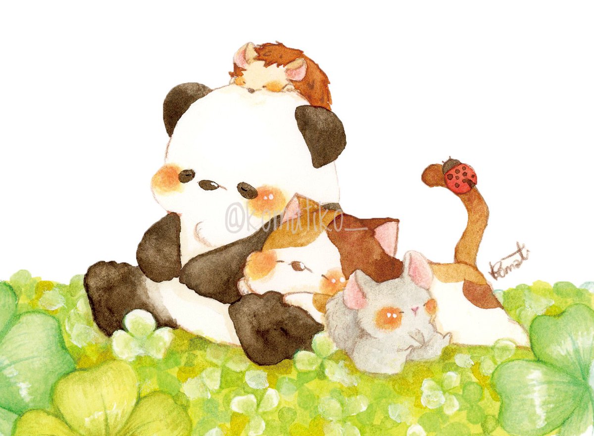 「ひとやすみ」 「よつばさがし」 個展のメインビジュアル「しあわせみっけ」のサイドストーリー作品です🍀 #しあわせみっけ #イラストレーター #動物イラスト #癒しイラスト #子ども向けイラスト twitter.com/komatiko_/stat…