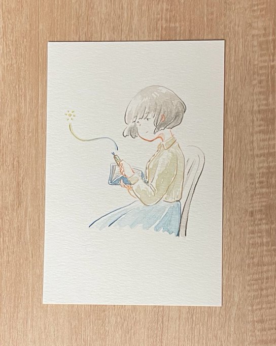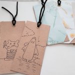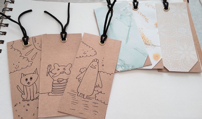 コピックでオリジナルしおり🔖カラフルなリボン🎀付きを作ってみました。ネコ🐱ちゃんがお絵描きしている姿にメロメロ✨😍✨ #コピック #アナログイラスト #しおり #ネコ #絵描きさんと繋がりたい #イラスト好きと繋がりたい