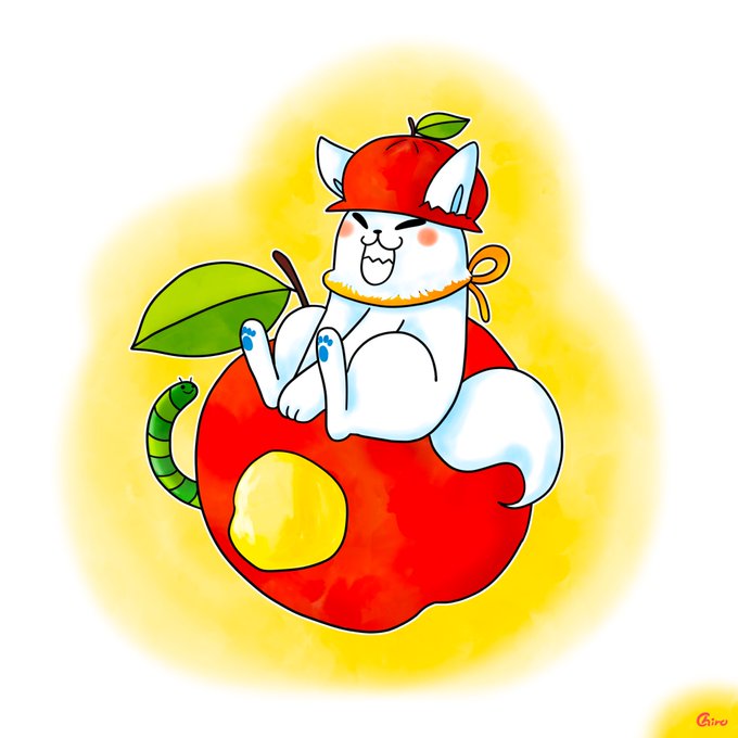 『りんご🍎』フェンリルの『リルフ』君です! #イラスト #創作イラスト #illustration #りんご #林檎 #絵柄が好みって人にフォローされたい #ししんじゅうぷらす #フェンリル