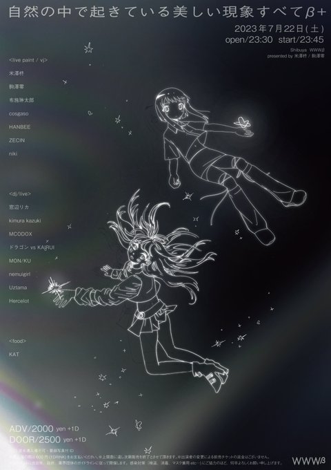 🔊ナイトイベントのお知らせです✧゚ 自然の中で起きている美しい現象すべてβ+ ・*☽:゚・⋆。✧゚⋆。:゚・*✧゚⋆。:゚・*⋆。☆⋆。:゚ 2023/7/22(土) 23:30-5:00 場所 @wwwb_shibuya 🎫TICKET↓ passmarket.yahoo.co.jp/event/show/det… #しぜすべβ