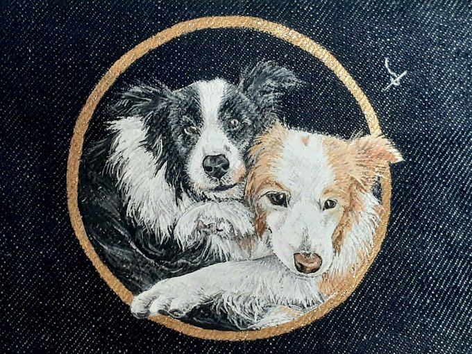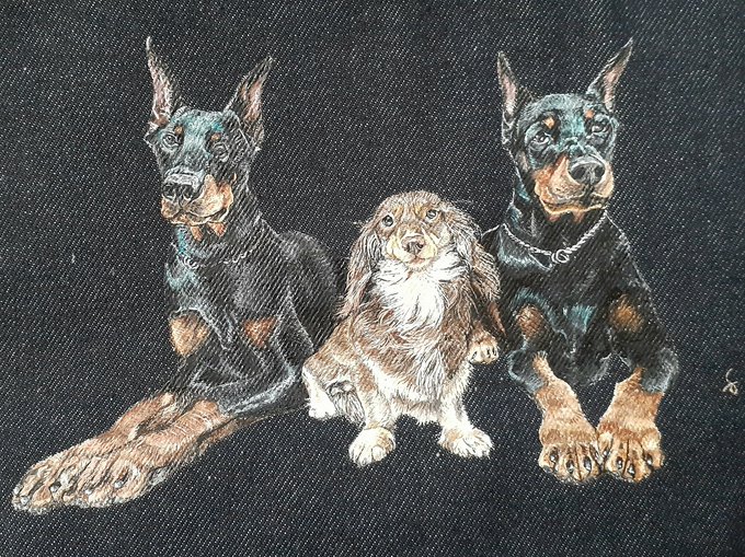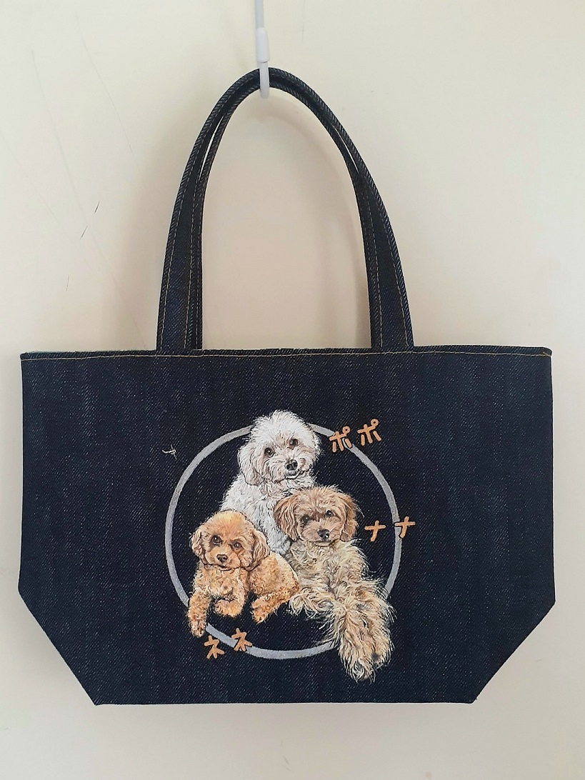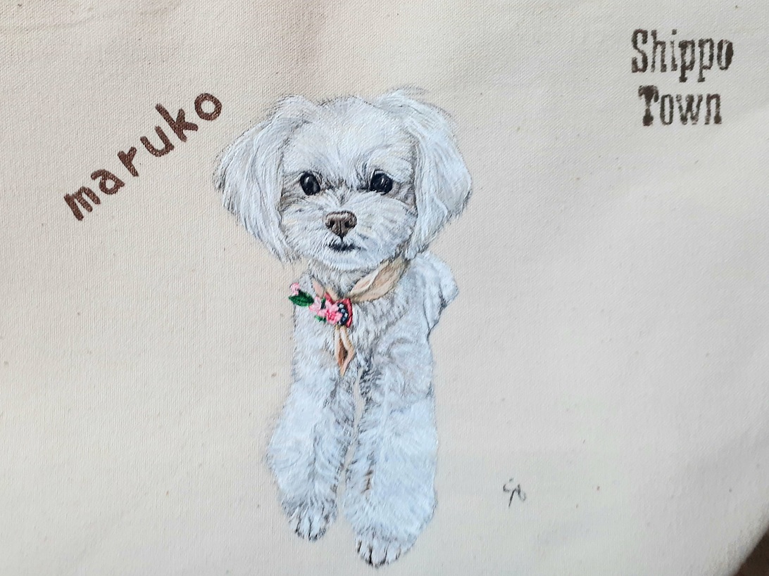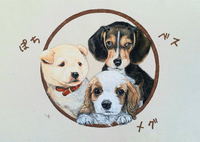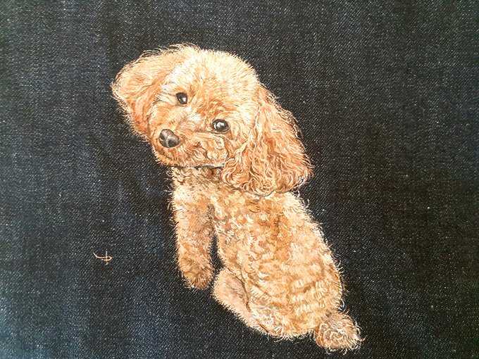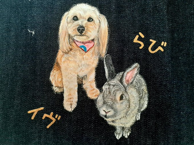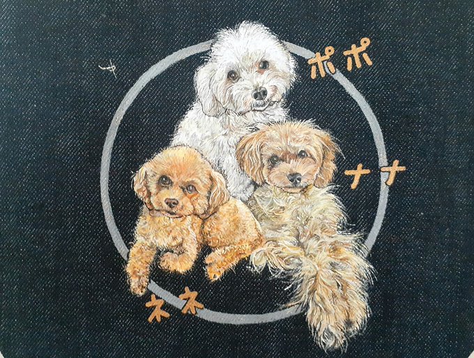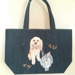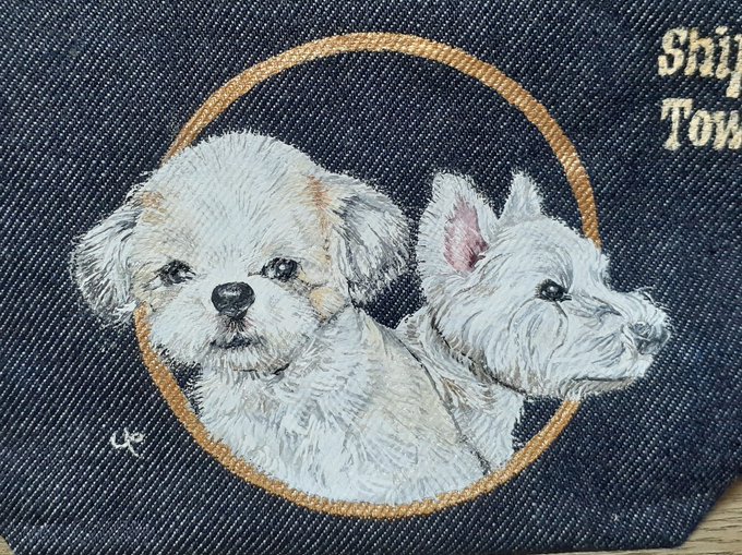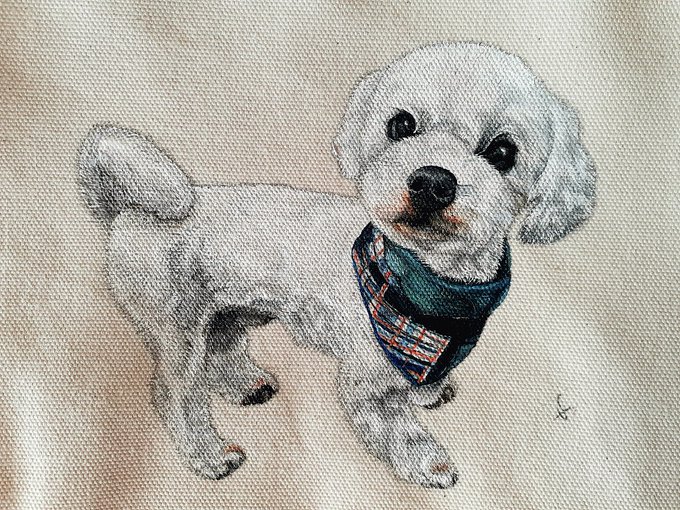 あなたのワンちゃんネコちゃん、ポーチ、トートに描きます 詳しくはこちら→ameblo.jp/yugo-honjo/ent… これ、生地に直接アクリル絵の具で描いてます! プリントでは出せないしっとりとした質感をぜひお楽しみください。 #絵描きさんと繋がりたい #ShippoTown #しっぽタウン
