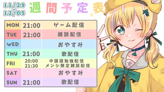 🐥配信スケジュール🐥 11月29日~12月05日配信スケジュールが決定したよ! 🐥お題箱 bit.ly/3nKGLNx 🐥Youtube youtube.com/c/SuzukazeShit… 🐥配信 #しとらいぶ 🐥イラスト #しとらーと ※使用させて頂くことがあります!