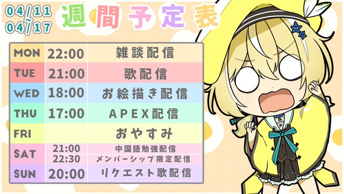 🐥配信スケジュール🐥 04月11日~04月17日配信スケジュールが決定したよ! 🐥お題箱 bit.ly/3nKGLNx 🐥Youtube youtube.com/c/SuzukazeShit… 🐥配信 #しとらいぶ 🐥イラスト #しとらーと ※使用させて頂くことがあります!