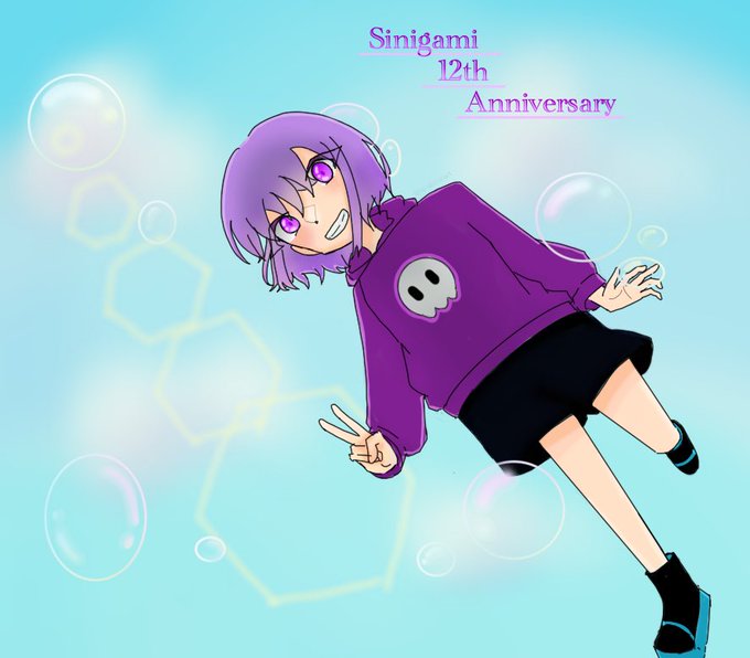 ♡ ••┈┈┈┈┈┈┈┈•• ♡ 12周年おめでとうございます🎊💐 これからも大好きです💜 ♡ ••┈┈┈┈┈┈┈┈•• ♡ #しにがみあーと #しにがみさん12周年 #しにがみくん12周年 #しにがみ12周年 #マイ日pic