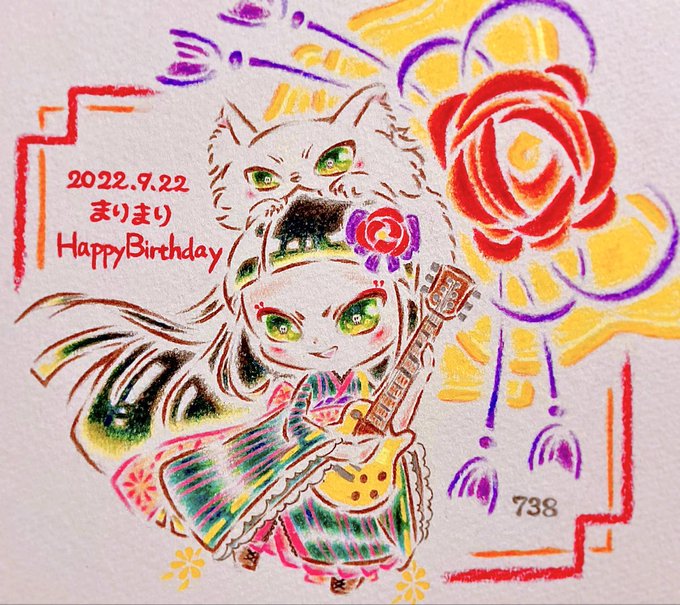 お誕生日おめでとうまりまり いつも素敵な歌声をありがとう ありがとうの気持ちを込めて描いた これからもいっぱい元気な姿を見せてくれると嬉しいな #しにものぐるい #まりまり #まりまり生誕祭 #まりまり生誕祭2022 #まりまり誕生祭 #まりまり誕生祭2022 #まりまり聖誕祭 #まりまり聖誕祭2022