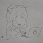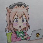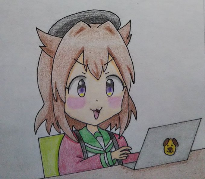 #しぶハチたん 描きましたー!(*≧∇≦)ノ💻️🐕️🐈️ しぶハチたん「カタカタカタカタカタカタカタカタッ、ターン!✨」 #ビッカメ娘 ( #ナイセン ) #ビッカメ娘を描き隊 #ファンアート #色鉛筆 #絵描きさんと繋がりたい