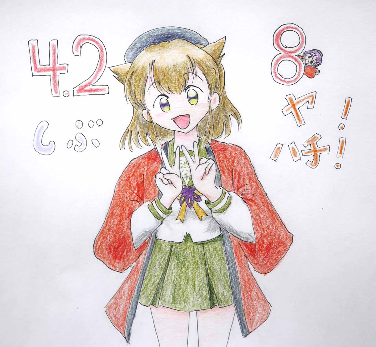 1日早いですが… #7月7日はしぶとーたん擬人化4周年 #7月7日はしぶハチたん擬人化4周年 #しぶとーたん 、#しぶハチたん おめでとうございます!🎉(*≧∇≦)ノ🎂✨🎁✨🐈️ #ビッカメ娘 ( #ナイセン ) #ファンアート #色鉛筆 #絵描きさんと繋がりたい