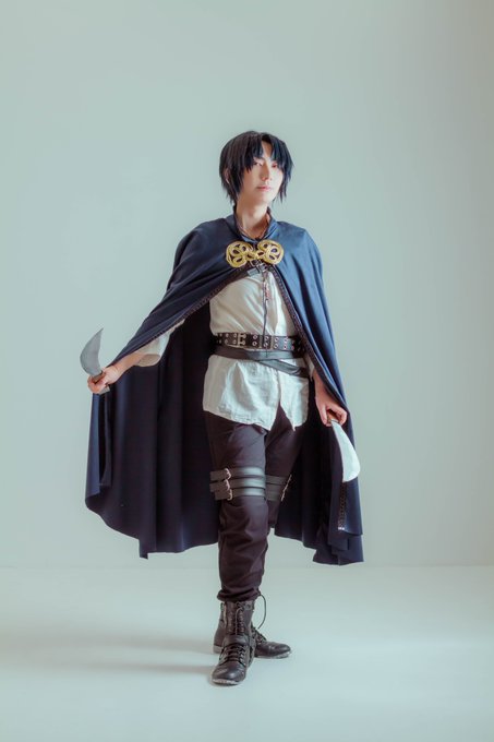 【Cosplay】 ⚠️捏造過去衣装⚠️ 英雄カバネが天子クオンを助けにくる写真を撮りたくて、しゃちょさん@shacho0906_cosがマント用意してくれました。(上半身くらいしか見えない構図を撮るため) せっかくなので全身撮ってもらったので記念に⚔ 撮影:@eihr___ #コスプレ #しゃちょさくふぉと