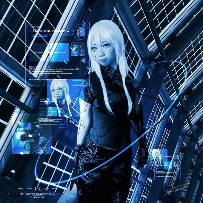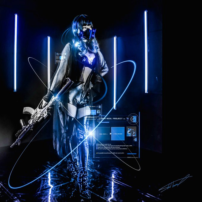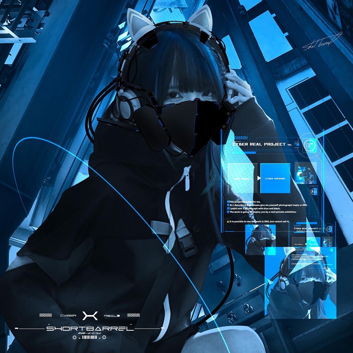写真の上からイラストを描く。 それが 『cyber real project⬛️🟦』 べるかさん model(@beruka225 ) logo(@yuyusuki2 ) #カッコイイと思ったらRT #しょーとばれる #cyberpunk