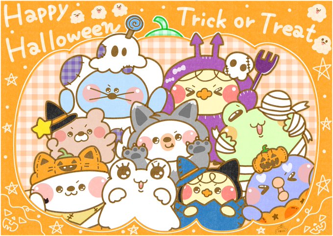 はぴはろー- ̗̀ 🎃 ̖́- お菓子くださーい(*」´□`)」 今週もよろしくお願いします🙏 #ハロウィンイラスト #イラスト #むぎゅまるズ #もこワン #しらたま #みんなで楽しむTwitter展覧会 #絵描きさんと繋がりたい