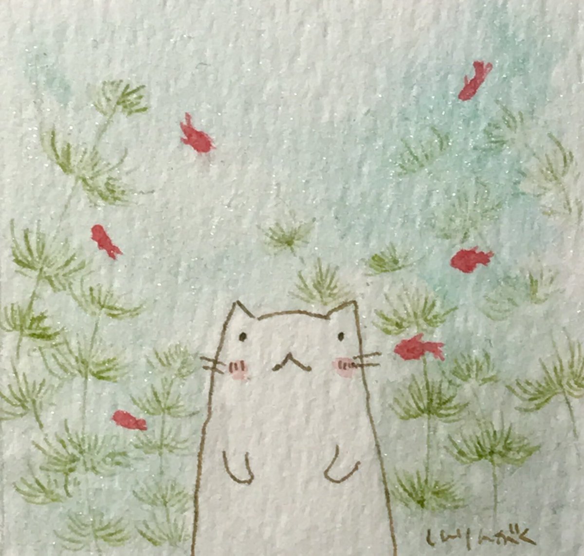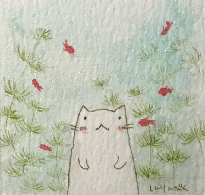 ちんまりイラストが思いの外楽しくて、いくつか描いてしまいました(^-^;) 先日のハガキサイズのイラストと並べると、小ささが際立ちます(笑) #1cmイラストチャレンジ #白猫さん #しらたまさん
